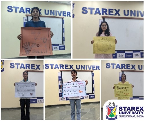 Starex University proudly concluded the Anti-Ragging Slogan, Poster, and Essay Writing Competition. The event saw enthusiastic participation, with students creatively expressing their commitment to a ragging-free campus. The successful completion of this event highlights the university's ongoing efforts to promote a safe and inclusive environment for all.